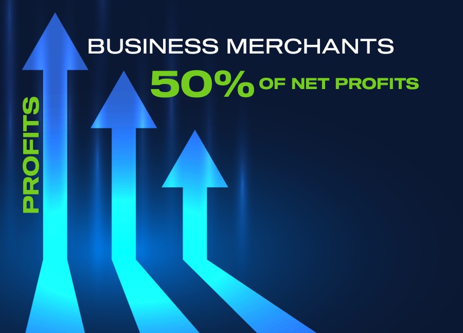 Business Merchants Receive - 50% of Net Profits